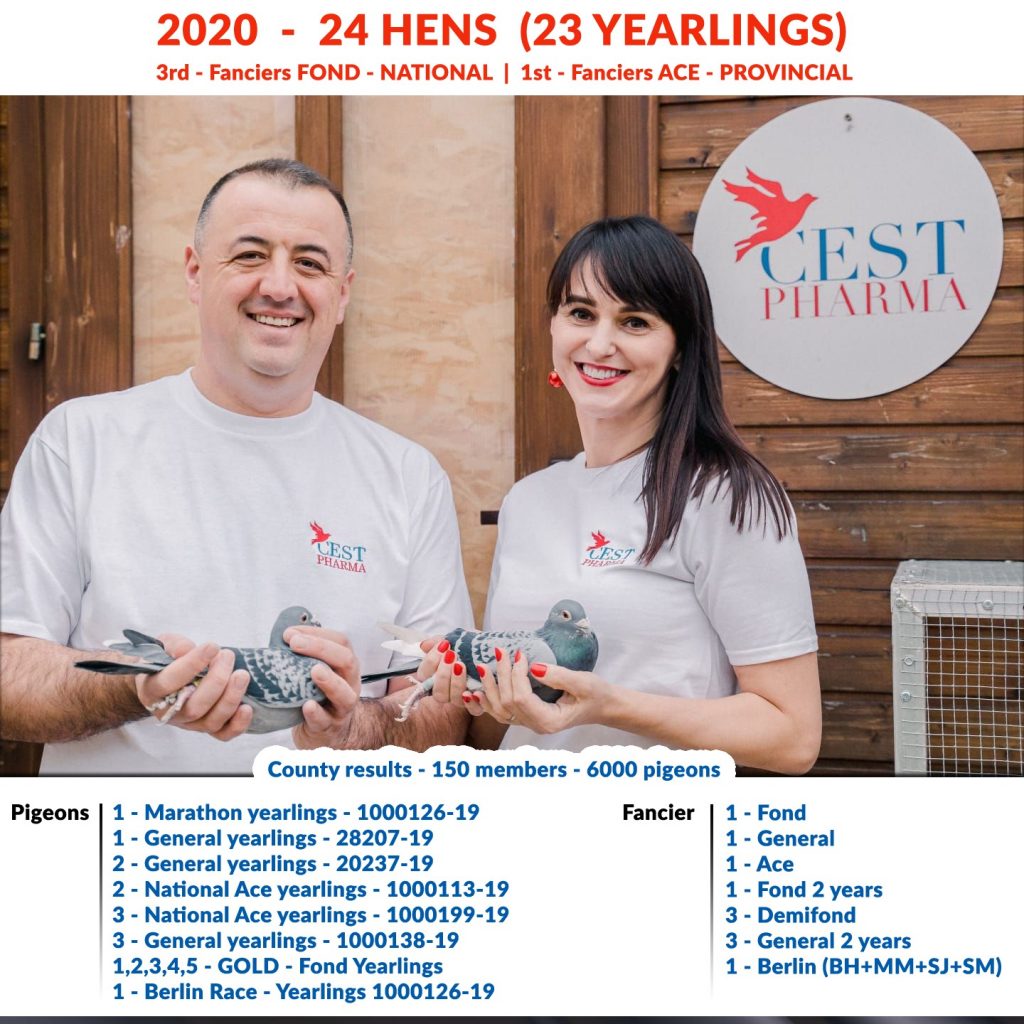 În 2020, echipa de concurs a fost formată din 24 de femele, dintre care 23 de 1 an. Iar rezultatele au fost de Top, de la 100 km la 955 km (Berlin Național). De fapt cred că vorbim de singura crescăătorie din Bihor care reușește să se evidențieze clar de la viteză la maraton, lucru dovedit prin obținerea Locului 1 As Crescător județean, 1 As Crescător Provincial și 7 As Crescător Național. Aceste rezultate nu sunt din întâmplare. În 2018, Familia Tunduc a ocupat din nou Locul 1 As crescător, atunci concurând cu o echipă de 23 de porumbei.